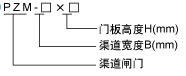 閘門(mén)采用渠道整體合裝結(jié)構(gòu)形式,暗桿式(常規(guī))、平面加筋型、插板式安裝;它是由啟閉機(jī)帶動(dòng)絲桿轉(zhuǎn)動(dòng),在梯形螺紋作用下使啟閉螺母帶動(dòng)門(mén)體上下運(yùn)行,以達(dá)到截?cái)嗷蚴柰ㄋ鞯淖饔谩?br />三、 型號(hào)說(shuō)明