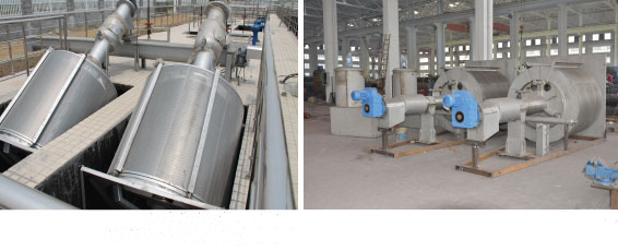 該設(shè)備采用轉(zhuǎn)鼓螺旋式,由圓形篩筒作為柵面,與水平面成35°安裝在水渠中,當(dāng)污水從格柵端頭流入篩筒內(nèi),大于柵隙的濾渣被攔截,沉積在篩筒內(nèi)表面,整個篩筒由電機驅(qū)動旋轉(zhuǎn),篩筒上方的清渣刷與沖水機構(gòu)對篩面進行清洗,將濾渣沖落入中央物料槽內(nèi),由輸送螺桿提升,經(jīng)壓榨、脫水后,由卸料口落入物料箱或輸送機進行外運處理。
