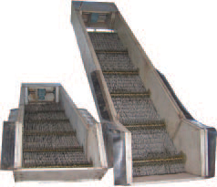 JTG階梯式格柵除污機(jī)是細(xì)格柵的一種,主要適應(yīng)10mm以下的固體雜物的分離。設(shè)有特殊的傳動(dòng)機(jī)構(gòu)和專用的階梯片裝卡機(jī)構(gòu)。在運(yùn)行過(guò)程中,通過(guò)動(dòng)?xùn)牌挽o片吏替錯(cuò)位,將截留的柵渣一階一階地向上傳輸,一方面使柵面自我清理,另一方面把固體雜物輸送到卸料口。